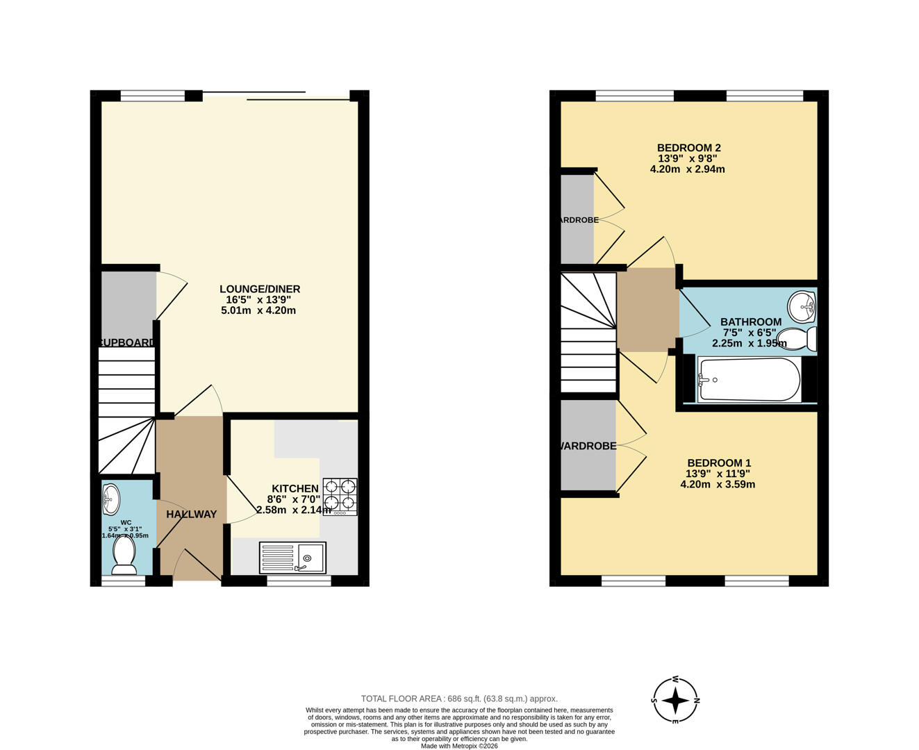 This charming terraced house on Aberdeen Avenue presents an excellent opportunity for families and professionals alike. With two well-proportioned bedrooms, both featuring fitted wardrobes, this home offers ample storage and comfort. The property boasts a modern family bathroom complete with a shower over the bath, as well as a convenient separate W.C. located on the ground floor.